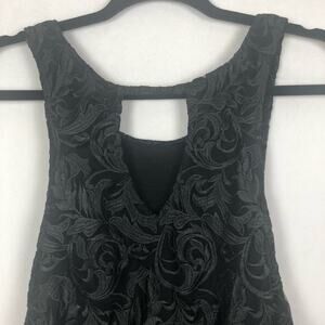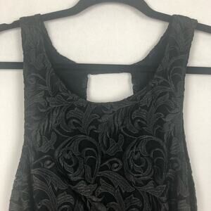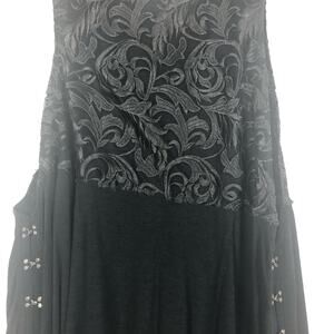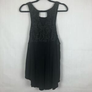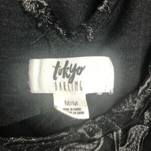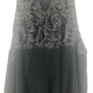 Tokyo Darling women's top in dark gray. Scoop neck. Sleeveless. Wide straps. Lined mesh and lace embroidered upper. Hook & eye closure at the sides. High-low hem. Cut out detail in back. Flowy fit. In good used condition. No stains, tears or holes.