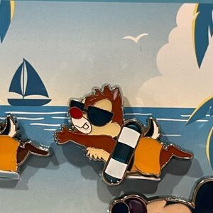 Straight from Tokyo Disney and I only have the one! What a unique and adorable pin set! Add this must have to your Disney collection! Featuring Mickey Mouse, Chip, Dale in their cute summer gear. These pins are perfect for adding to your lanyard, backpack, bag, etc.