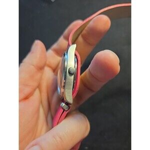 Tokyo bay hot pink large faced silver tone ladies analog wristwatch