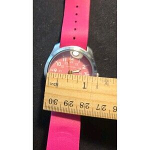The Tokyo Bay hot pink large faced silver tone ladies analog wristwatch is a stylish and casual timepiece designed specifically for women. With a vibrant pink case, bezel, and band, this watch is sure to make a statement. The quartz movement ensures accurate timekeeping, while the analog display adds a classic touch to this trendy accessory. Perfect for everyday wear, this wristwatch is a fashionable choice for those looking to add a pop of color to their outfit.