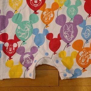White with colorful rainbow Mickey balloon graphic. Snaps on bottom and side for easy diaper changes. A rare find in the US!