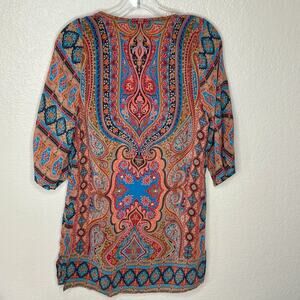 Tolani 100% Silk Paisley Boho Tunic Dress Top XS-S India Ethnic Print Resort Lightweight Relaxed fit
