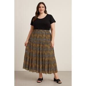 Tolani Silk Maxi Skirt Tiered Animal Print Boho Flowy Plus Size