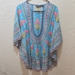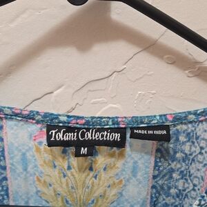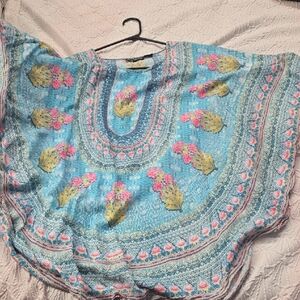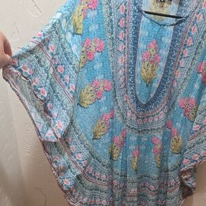 Gorgeous Tolani Collection Narissa Caftan Tunic in vibrant aqua. Features a flowing design and vibrant colors.