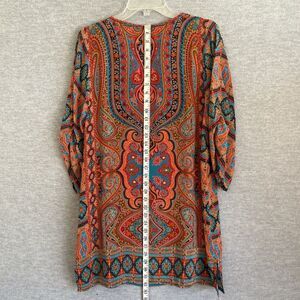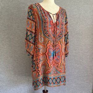 Tolani Boho Silk Tunic Dress Size M Vibrant Festival Hippie Tassels Cover Up
