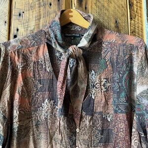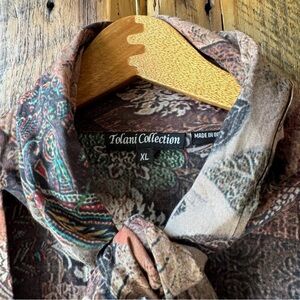 Tolani Collection 100% Modal Boho Floral Neck Tie Button Down Blouse Top XL