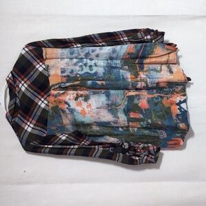 Tolani Collection Black Plaid Long Sleeve Button Up with Back Knit Design Medium