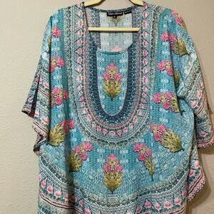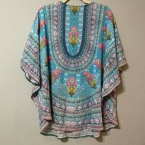 Tolani Collection Blue Floral Swimsuit Coverup Womens M Boho Tunic Pullover
