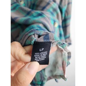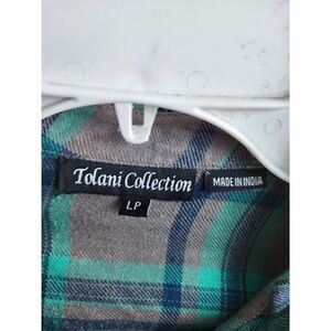 Tolani Collection Blue/Green/Grey Plaid & Floral Button Down Shirt size Large Petitie,. Made in India
