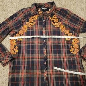 Tolani Collection Estrella Plaid w/ Embroidered Flowers Button Down Shirt XL