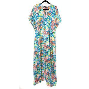 Tolani Collection Kat Blue Floral Maxi Kaftan Dress Womens Size Medium NEW