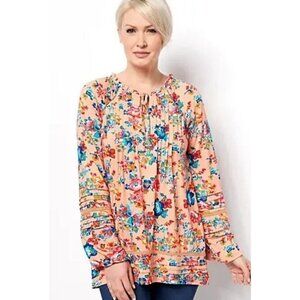 Tolani Collection Long Sleeve V-Neck Blouse Lace Detail Peach X-Large