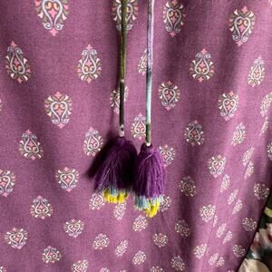 Tolani Collection Wine Floral Mixed Print Modal Long Sleeve Tasseled Blouse Sz L