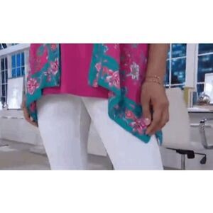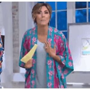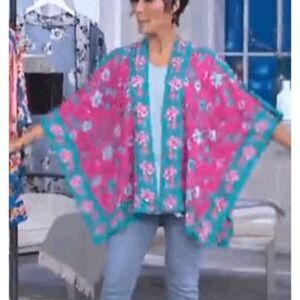 Tolani Collection Womens 3X Floral Printed Open Front Woven Kimono Blue Pink NWT