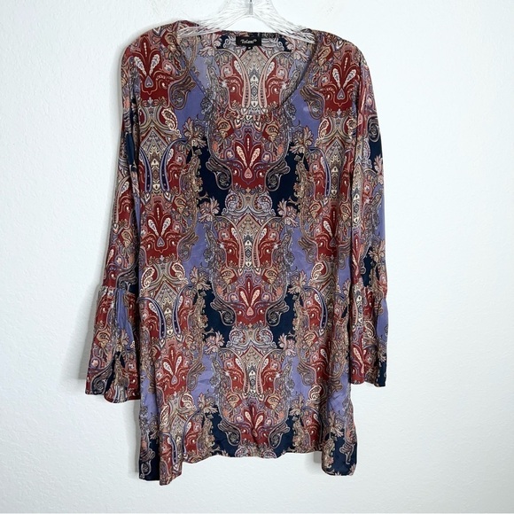 Tolani Dress Women Medium Silk Paisley Long Sleeve Shift Purple Flare Sleeve B26 3421