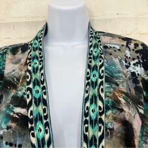 Tolani Karma Black Abstract 3/4 Sleeve Open Cardigan