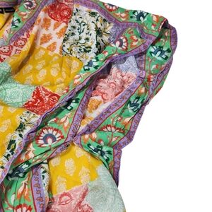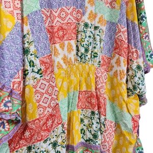The Tolani Raelyn Kimono Cardigan in XL Petite size is a colorful and flowy blouse designed for women who appreciate a mix of festival, beach, and bohemian styles. This multicolor patchwork cardigan features 3/4 dolman sleeves, making it a stylish addition to any wardrobe. Made from modal material, this kimono-style top evokes a prairie and garden girl theme, perfect for those who love a relaxed and artistic look. Ideal for a fairy-like or whimsical aesthetic, this Tolani blouse is a versatile piece that can be dressed up or down for various occasions.