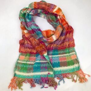 Beautiful Tolani Multicolored Stripe ZigZag Pattern Ruched Fringe Fall Scarf