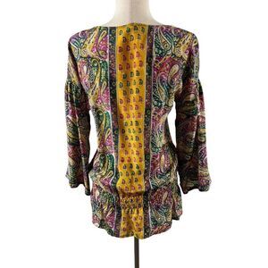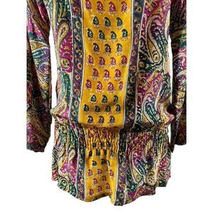Tolani Ophelia Paisley Bell Sleeve Silk Blouse Small Yellow ASO Nicky Hilton