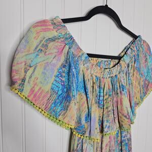 Tolani Ridhi Splash Dress Size XS Viscose Pastel Knee Length Boho Beach Summer