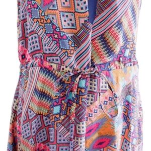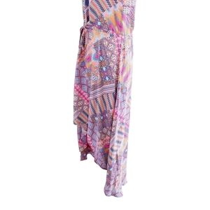 Tolani 100% Silk Geometric Print Drawstring Waist Hi Lo Maxi Dress Size S