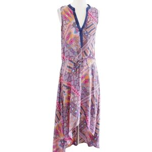 Tolani Silk Geometric Print Drawstring Waist Hi Lo Maxi Dress Pink Blue sz S