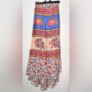 Tolani Silk Wrap Skirt Made in India - Pink Elephants and Camels Boho - One Size