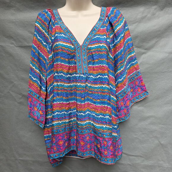 Tolani Size Medium Striped 100% Silk 3/4 Sleeve Fluttery Shirt Blouse Boho