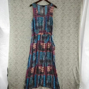 Tolani Viscose Scoop neck Paisley Printed Wrap Tank Maxi Dress L