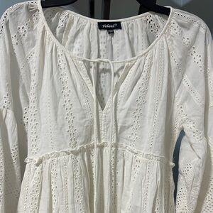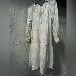 Chic long sleeve dress by Tolani. Features delicate lace details. Perfect for elegant occasions.