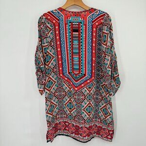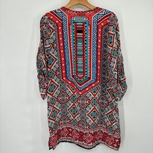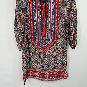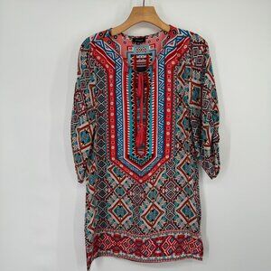Tolani Women's size XS Silk Tunic mini Dress Multicolor Geometric Print