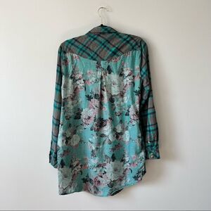 Tolani plaid floral back printed oversized flannel tunic