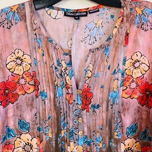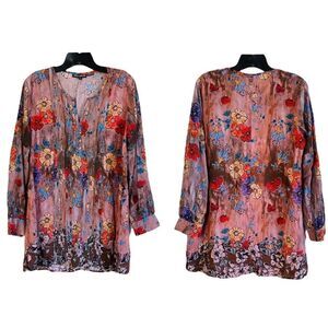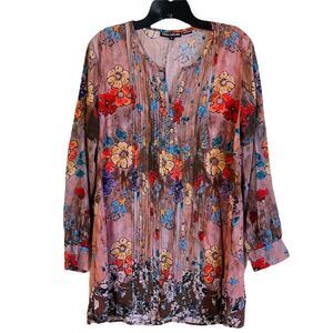Tolani Collection Boho Style Poppy Floral Tunic Sz Small Petite