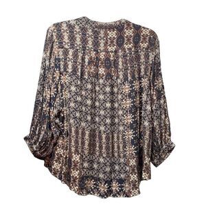 Tolani Collection Button Down Navy and Brown Top Size Small