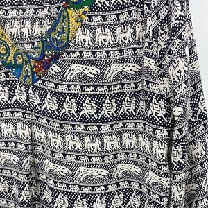 Tolani Floral Printed 100% Silk Multicolor Tunic Top Women’s Sz S Elephants.