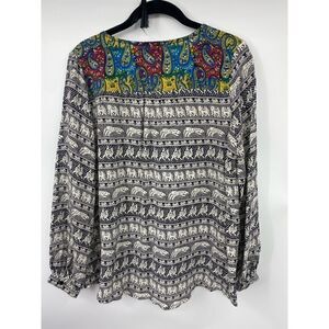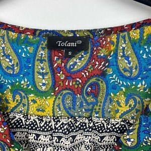 Tolani Silk Boho Tribal Paisley V-neck Blouse
