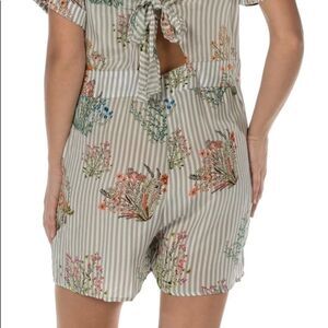 Tolani Collection Silk Floral Striped Henna Romper, size small. New with tags! Side zipper. Super cute bow tie back. Dry clean only. 100% silk! Still available online for full price!