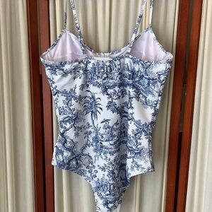 Tolie Corset One Piece Swimsuit Womens size L Blue White Country Scene.