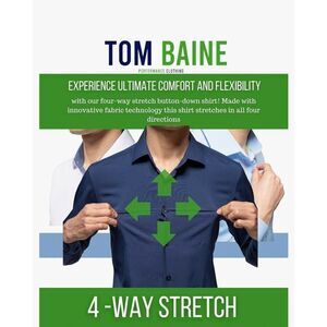 Tom Baine Men's Black Poly/Spandex Slim Fit Performance Stretch Button Down Shirt NEW NWT sz M
