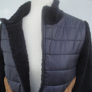 Mixed Textile--Black Quilting on the top with Acrylic fleece on the arms and lower body and collar