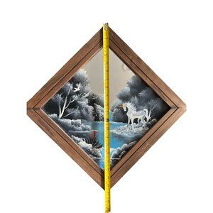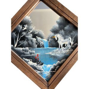 Tom Dunham Painting On Mirror Unicorn Nature Wildlife Framed Dated 1990