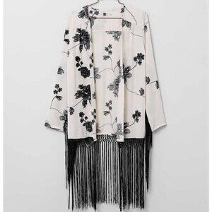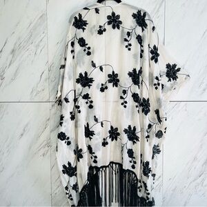 Tom & Eva Floral Stitch Embroidered Fringe Boho Kimono FREE SIZE