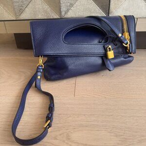 Tom Ford Alix Fold Over Crossbody Bag Leather-Cobalt Blue