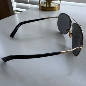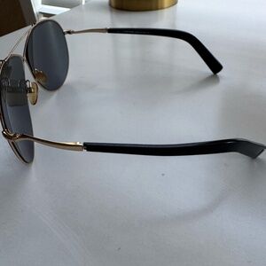 Tom Ford Eva TF374 28Q 61 10 140 mm criss cross gold black frame aviator sunglasses with gray mirrored lenses. Good condition, no major flaws such as cracks or tarnish. A few minor scratches on lenses, but not noticeable when wearing and does not affect sight. Comes with original case and cleaning cloth.