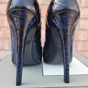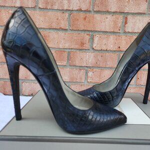 Elegant black heels with croc-embossed texture. Sleek and stylish design. Perfect for any occasion.