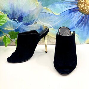 Tom Ford Black Suede Peep-Toe Mules With Gold Stiletto Heel Size 35