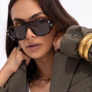Aviator sunglass frame in dark havana.