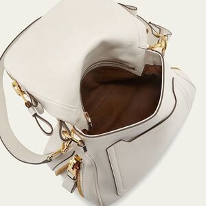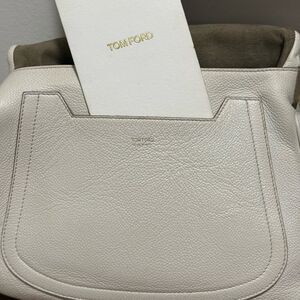 Elegant cream shoulder bag by Tom Ford. Features gold-tone hardware. Sleek and stylish design.