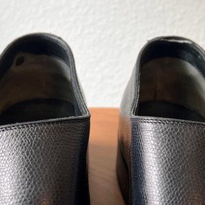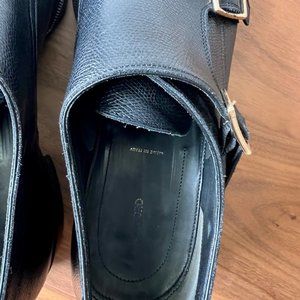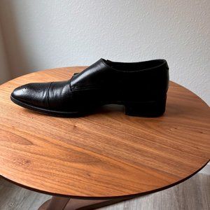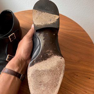 Shoes are in excellent used condition. This pebbled grain monk strap is in the TF Gianni model which features a chiseled toe and stacked heel.