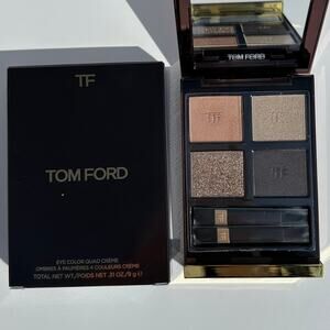 Tom Ford's Eye Color Quad Crème Eyeshadow Palette in "35 Rose Topaz" is a versatile neutral quad with a mixture of matte and shimmer shades in soft nude, frosted beige, silver sparkle and charcoal. Perfect for easily creating day to night looks. Infused with a pigment technology that combines lush emollients and mimics the structure of skin’s ceramides, Eye Color Crème long-wearing eyeshadows move with skin for a crease- and flake-resistant finish and high-impact intensity. Full size, total net weight .31 oz / 9g. Brand new in box and unused; only removed for these photos. Made in Italy.